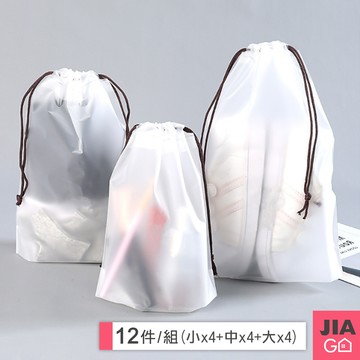 JIAGO 磨砂防水透明束口袋 旅行分裝袋-12件組(小號x4+中號x4+大號x4)