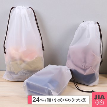 JIAGO 磨砂防水透明束口袋 旅行分裝袋-24件組(小號x8+中號x8+大號x8)