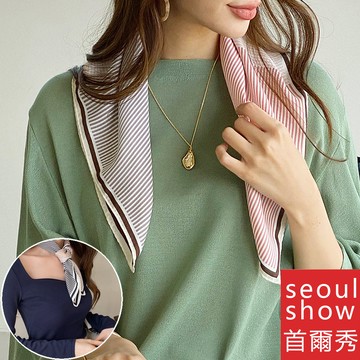 seoul show首爾秀 四格細線條方領巾仿真蠶絲緞面頭巾雪紡絲巾