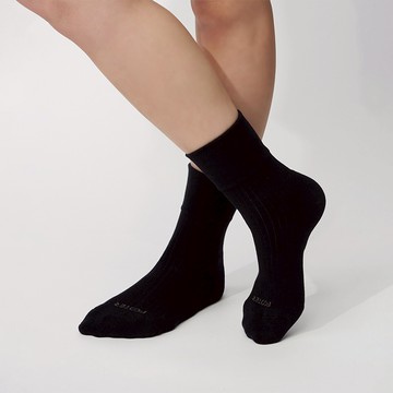 黑膠唱片 抗菌中筒襪 - 黑(F、XL)