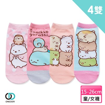 【ONEDER 旺達】角落小夥伴直版襪   4雙組