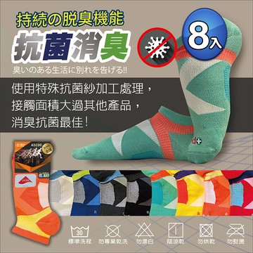 8雙-【亞斯多】台灣 ASEDO輕壓機能足弓抗菌除臭襪-隨機出貨