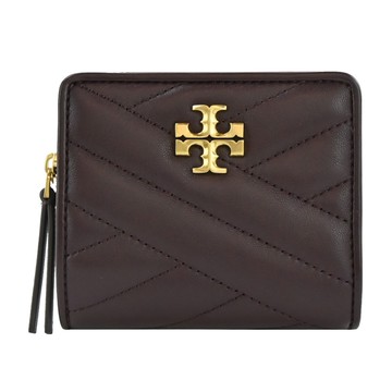 TORY BURCH KIRA 金字LOGO羊皮斜紋拉鍊零錢短夾-暗紅