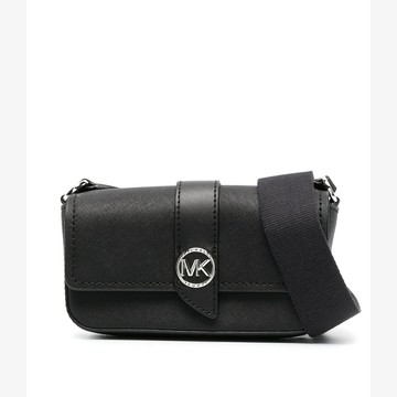 【Michael Kors】專櫃款 GREENWICH 防刮翻蓋旋鈕肩背/斜背二用包-黑色