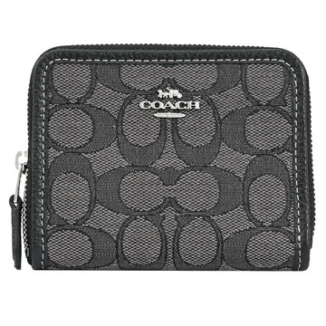 COACH CH389 經典緹花布拼接拉鍊短夾.黑灰