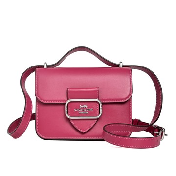 點我下載COACH桃紅素面全皮復古硬殼方框T釦翻蓋小款斜背包