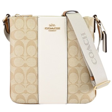 COACH新款大C直條紋皮革、PVC肩背/斜背包(卡其白)