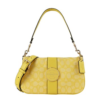 COACH 新款圓扣緹花C拼接皮革肩背/斜背兩用麻將包(復古黃)