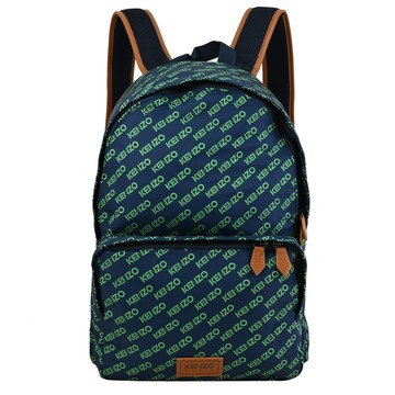 KENZO 5SA603 滿版LOGO印花休閒後背包.深藍/綠