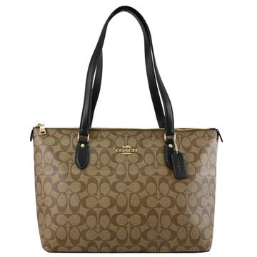 COACH 經典C LOGO印花拉鍊肩背托特包/購物包(駝/黑邊)