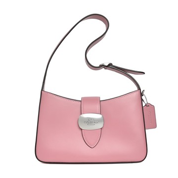 COACH ELIZA玫瑰粉素面全皮橢圓銀釦鞍型肩背包