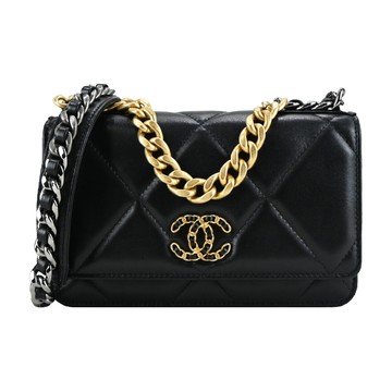 CHANEL 19 經典 LOGO菱格粒紋小羊皮WOC手拿/斜背包(黑色) _廠商直送