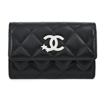 CHANEL經典雙C LOGO菱格紋小羊皮卡片/零錢夾(黑色)