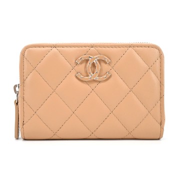 CHANEL限定款經典雙C菱格紋小羊皮拉鍊零錢夾(駝色)