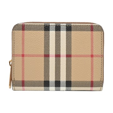 BURBERRY 8084171 DANIEL 格紋ㄇ字拉鍊零錢短夾.卡其