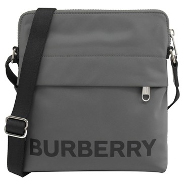 BURBERRY 8052870 燙印LOGO中性風拉鍊斜背扁包.灰