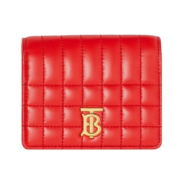 BURBERRY Lola TB金字LOGO格紋絎縫羔羊三折短夾(紅色)