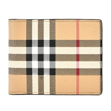 BURBERRY 巴寶莉 經典Vintage 格紋PVC 皮革8卡對開小短夾(卡其米)