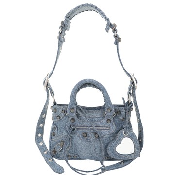 點我下載BALENCIAGA Neo Cagole 小款 牛仔布肩/斜背機車包(藍色)