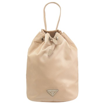 PRADA三角LOGO經典尼龍束口萬用包/化妝包(裸膚色)