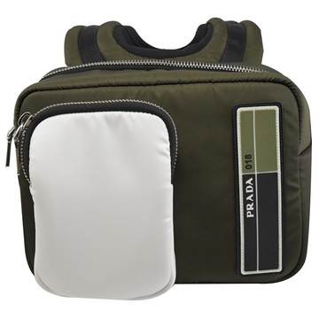 PRADA 2VZ044 線條LOGO尼龍減壓設計休閒後背包.綠/白