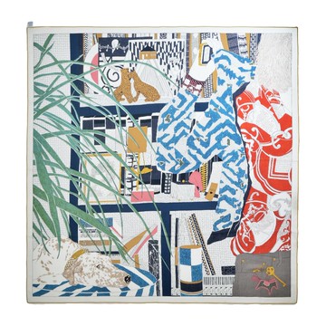 【Hermes 愛馬仕 】H001364SF 45 Grand Apparat Forever Scarf 手工捲邊真絲斜紋方巾(印花圖騰)