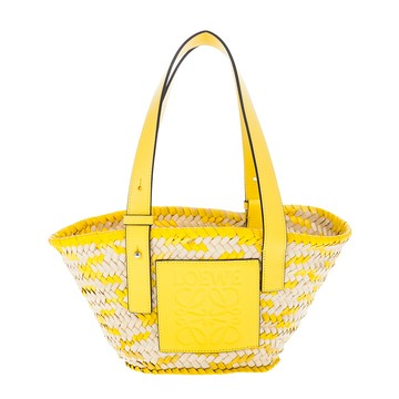 LOEWE 新款Anagram 立體壓紋拼皮小號棕櫚葉手提竹籃包 (檸檬黃)