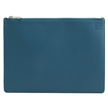 LOEWE 烙印LOGO雙面撞色手拿包/收納包.藍/橘