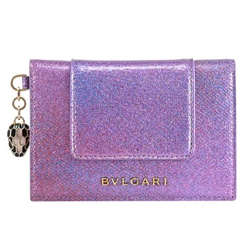 BVLGARI 寶格麗 292640 金屬LOGO細閃皮革對開卡夾.幻彩紫