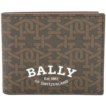 BALLY Brasai白字LOGO雙B印花設計TPU 6卡對折短夾(棕)