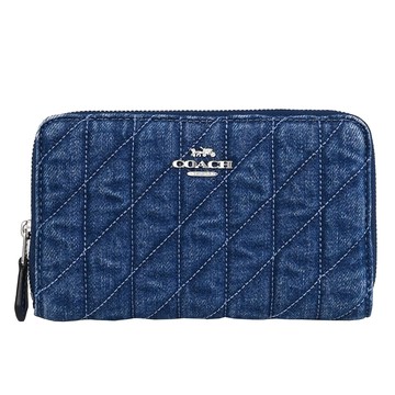 點我下載COACH CAP29 金屬LOGO牛仔布絎縫拉鍊中夾.靛藍色