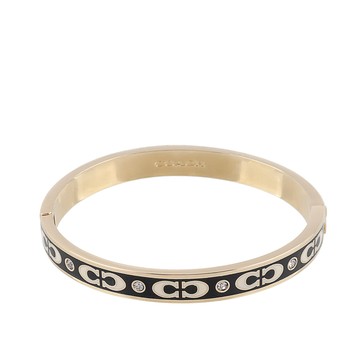 COACH CC Logo 琺瑯及玻璃水鑽不可調手環(金色/黑色) CI904 GDBK