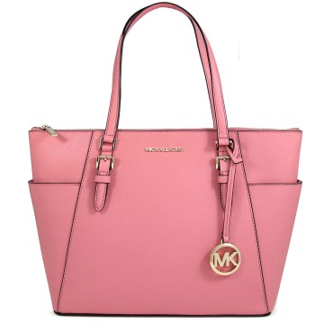MICHAEL KORS CHARLOTTE 金字LOGO茶花粉色防刮皮革托特肩背包