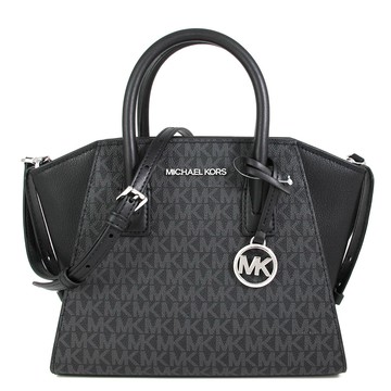 Michael Kors Mercer Logo 吊飾塗層帆布二用包/黑色