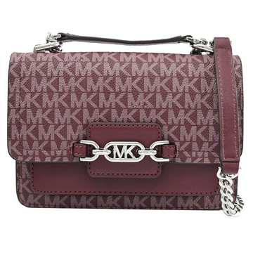 MICHAEL KORS HEATHER 金屬MK印花鍊帶斜背包.酒紅