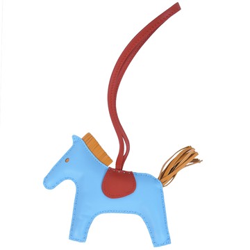 HERMES 小羊皮手工馬兒吊飾(中/天藍)