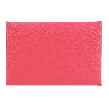 Hermes 愛馬仕經典Calvi系列羊皮釦式名片/零錢包(U5唇膏粉)