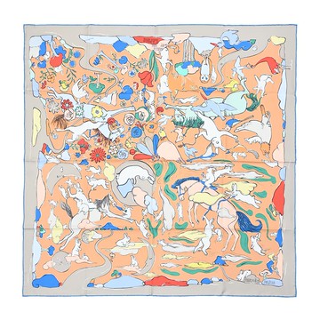 【Hermes 愛馬仕 】H001364SF 45 Grand Apparat Forever Scarf 手工捲邊真絲斜紋方巾(印花圖騰)