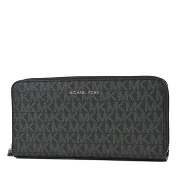 MICHAEL KORS 男款 緹花LOGO防刮皮革拉鍊長夾-黑色