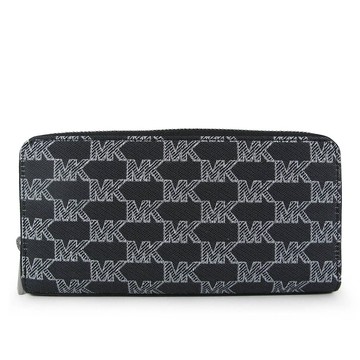 MICHAEL KORS COOPER 黑色緹花描邊MKㄇ型拉鍊長夾