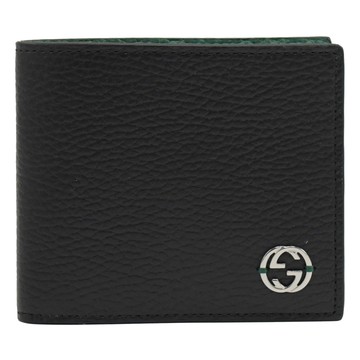 GUCCI 610466 經典雙G LOGO 內裡撞色4卡零錢短夾.黑/綠