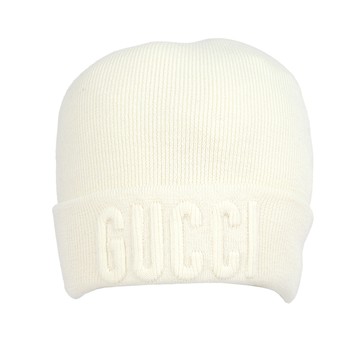 GUCCI 刺繡Logo 羊毛毛帽 M (白色) 764541 4GAHF 9000