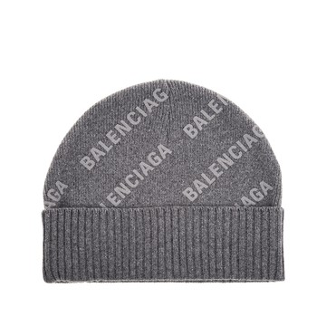 BALENCIAGA 巴黎世家經典貼片滿版小字母LOGO喀什米爾毛帽 (灰色)