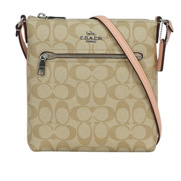 COACH ROWAN 簡單拉鍊PVC扁斜背包(卡其粉綠)