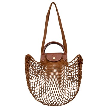 LONGCHAMP Le pliage Filet 棉線編織花邊手提/肩背漁網包(L/菸草棕)