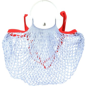 LONGCHAMP Le pliage Filet 撞色棉線編織白皮革手提/肩背漁網包(L/藍紫紅)