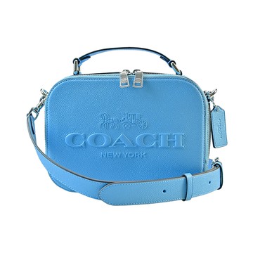 COACH天空藍馬車浮雕防刮皮革雙背帶斜背包/相機包/化妝盒包