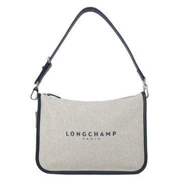 [平輸版]LONGCHAMP ESSENTIAL系列帆布LOGO字母肩背包(大/亞麻)真品平輸