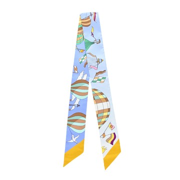 Hermes 愛馬仕Les Folies du Ciel瘋狂天堂Twilly絲巾(水藍/黃)