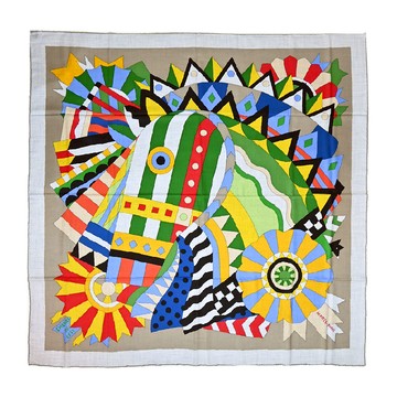 【二手名牌BRAND OFF】HERMES 愛馬仕 多色 Parade en Fanfare 絲綢 絲巾 90*90